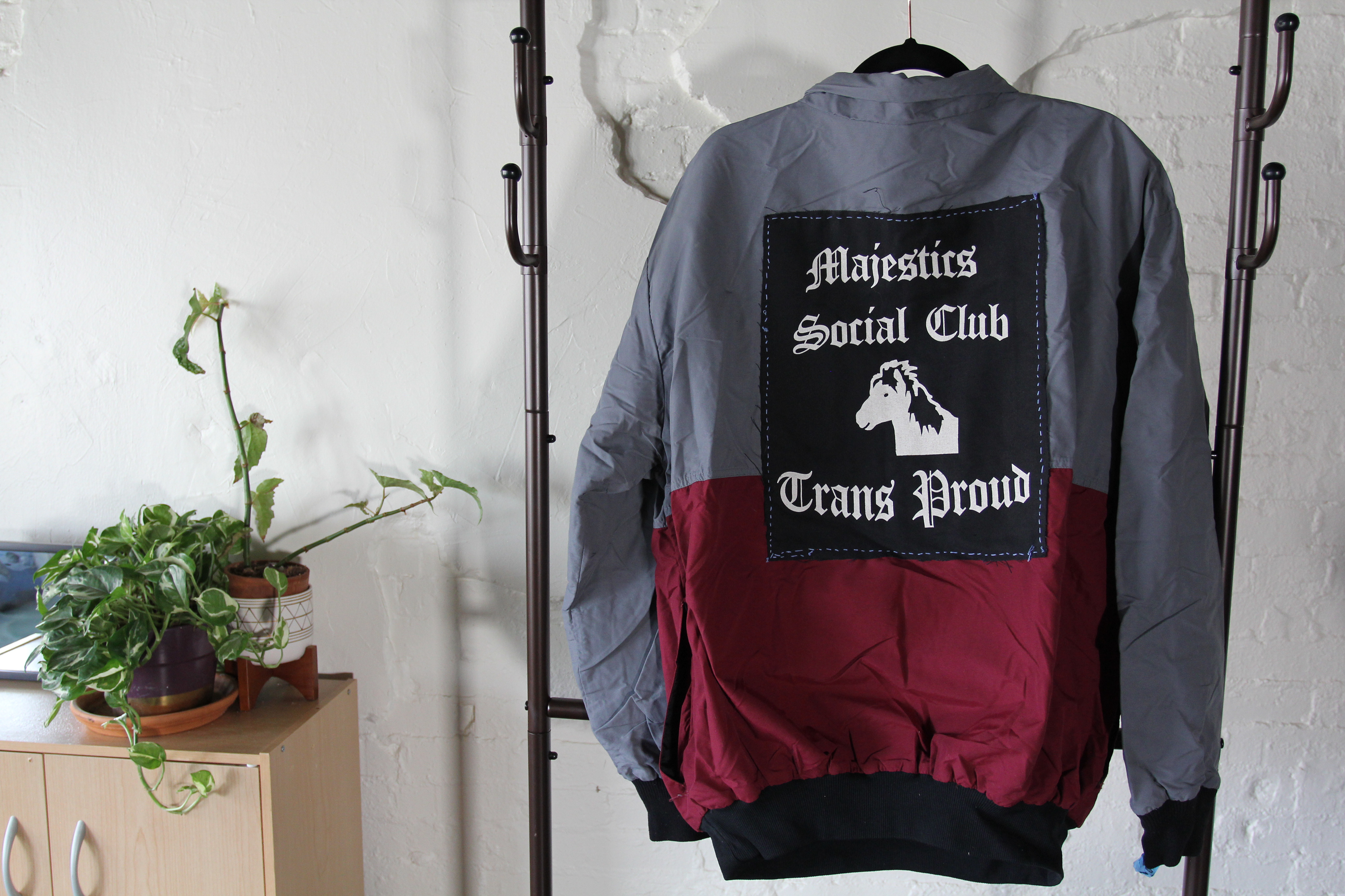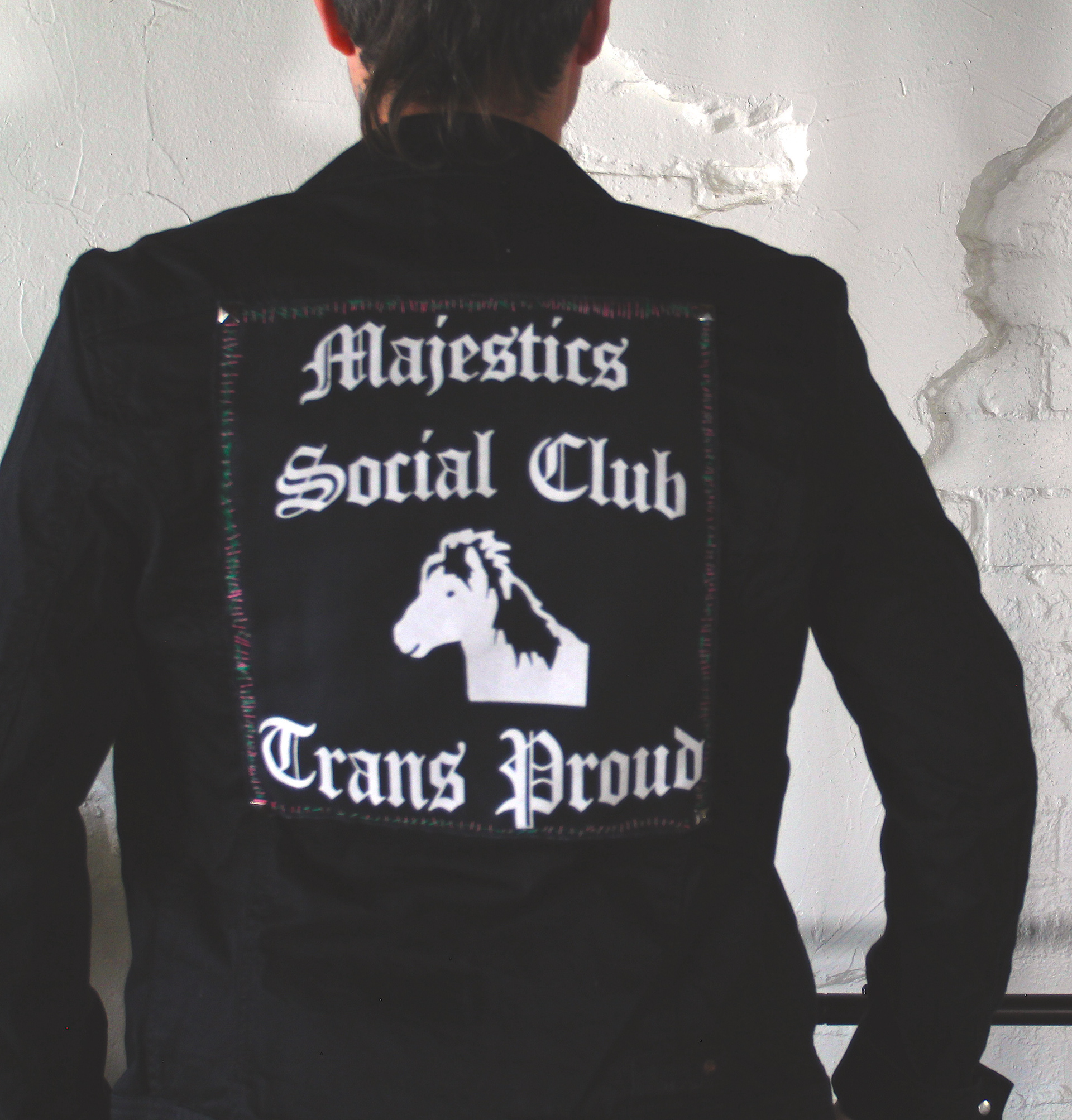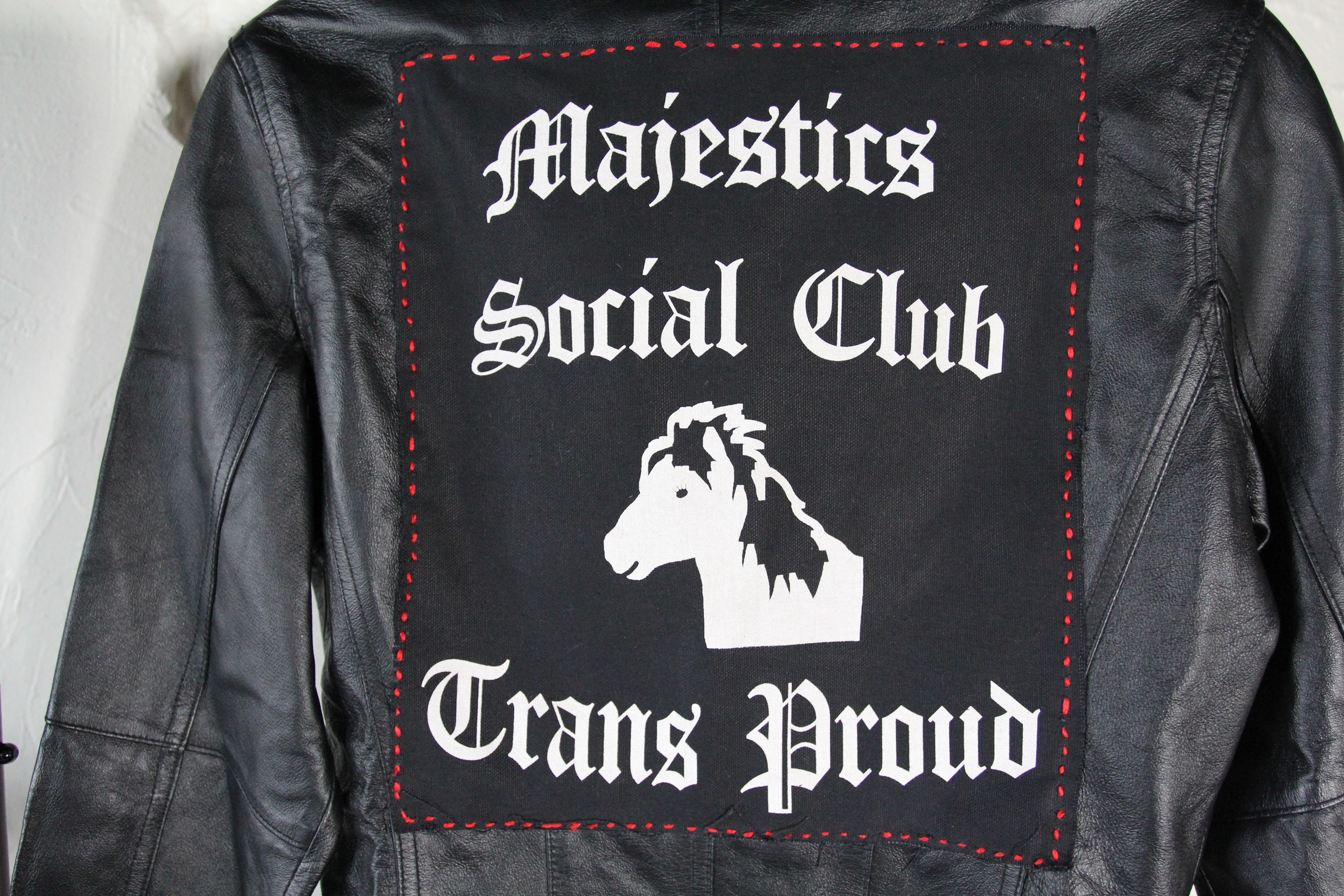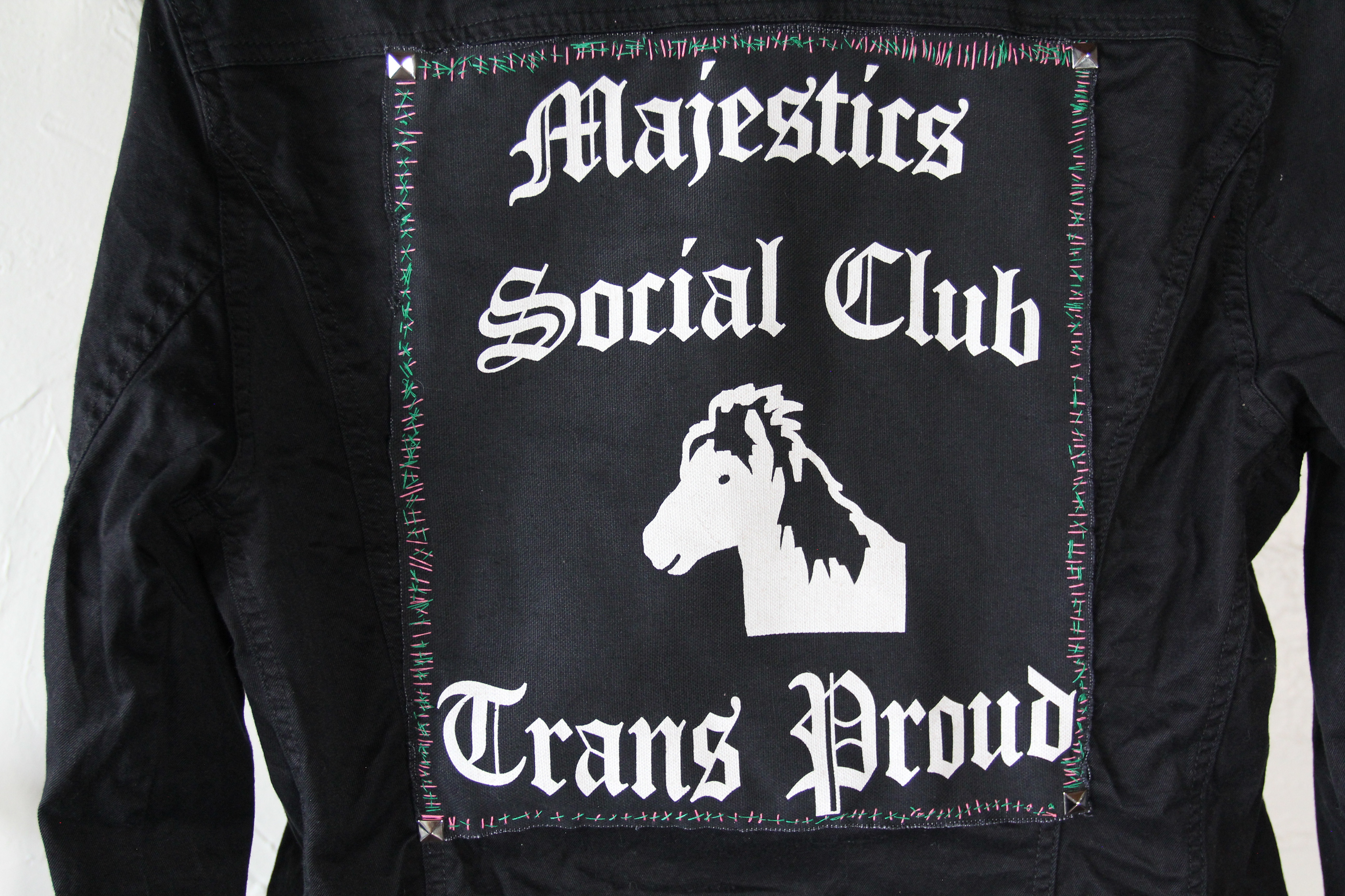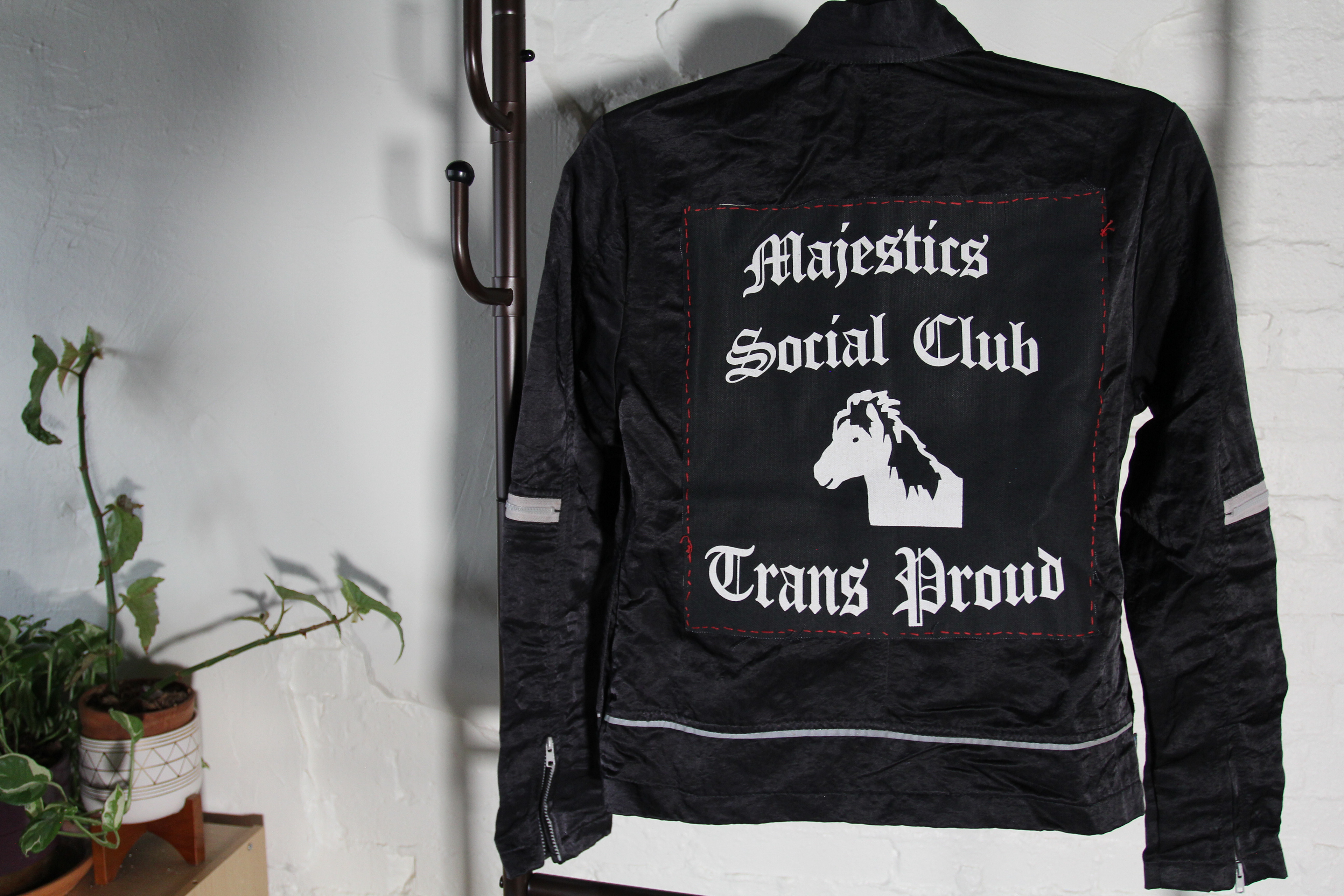 So, I present to you this collection of Club Jackets. Mostly assembled during the pandemic shutdown times, they have kept me company. They are in the spirit of movie outlaws, chosen family, self-love, queer magic, thriftiness, and belonging. I have sewn each one with great love and solidarity for my trans siblings. We are so strong, so needed in the world.