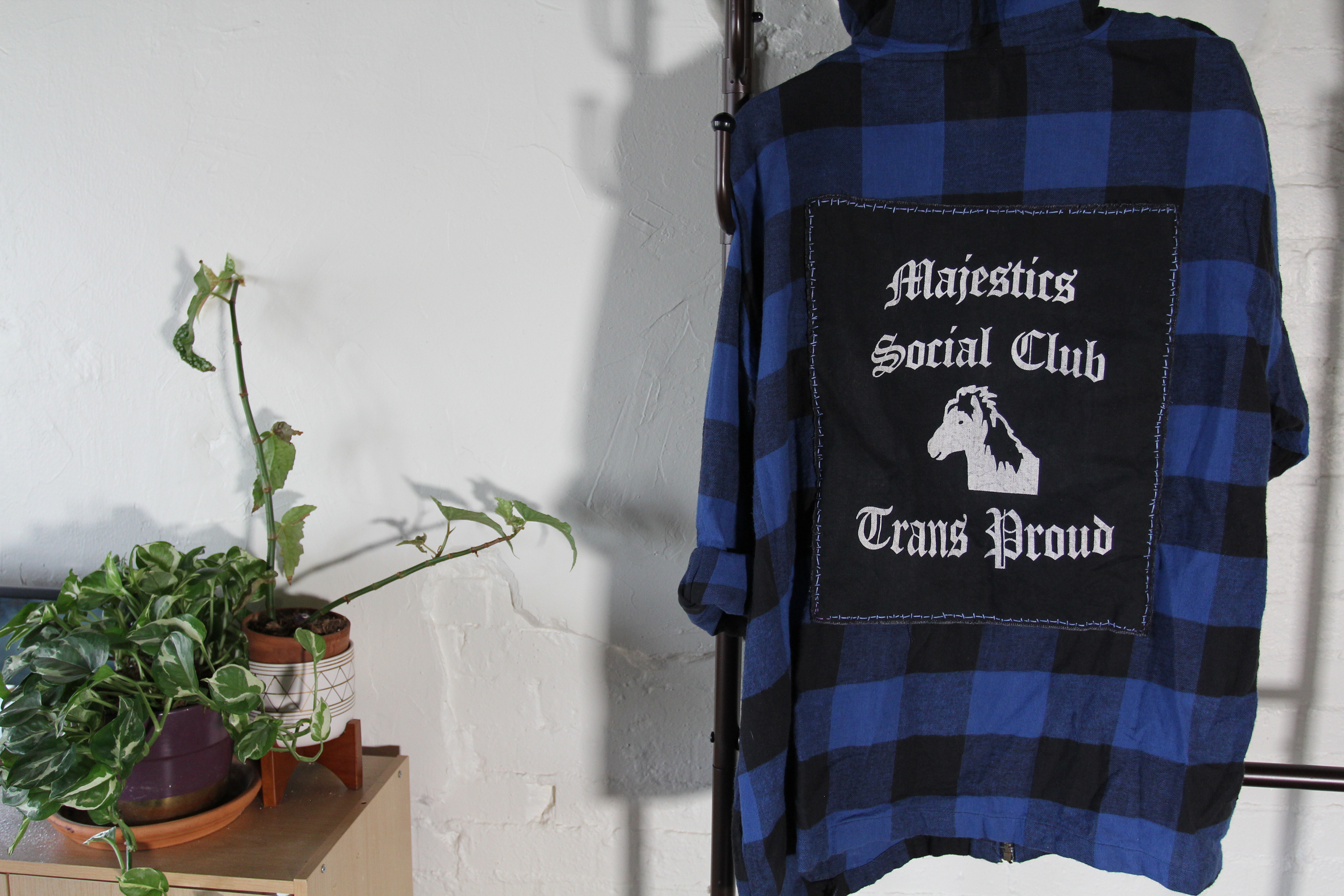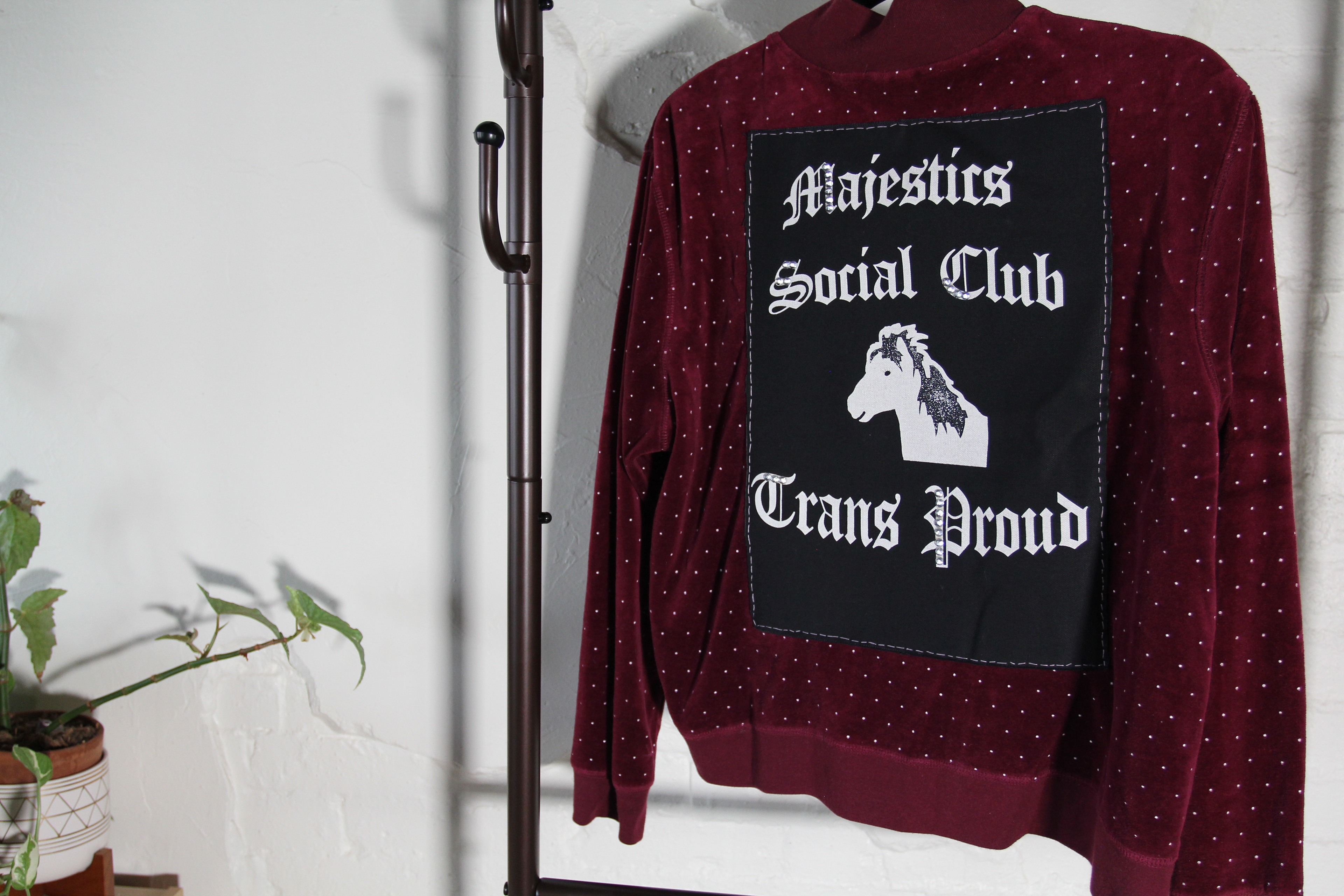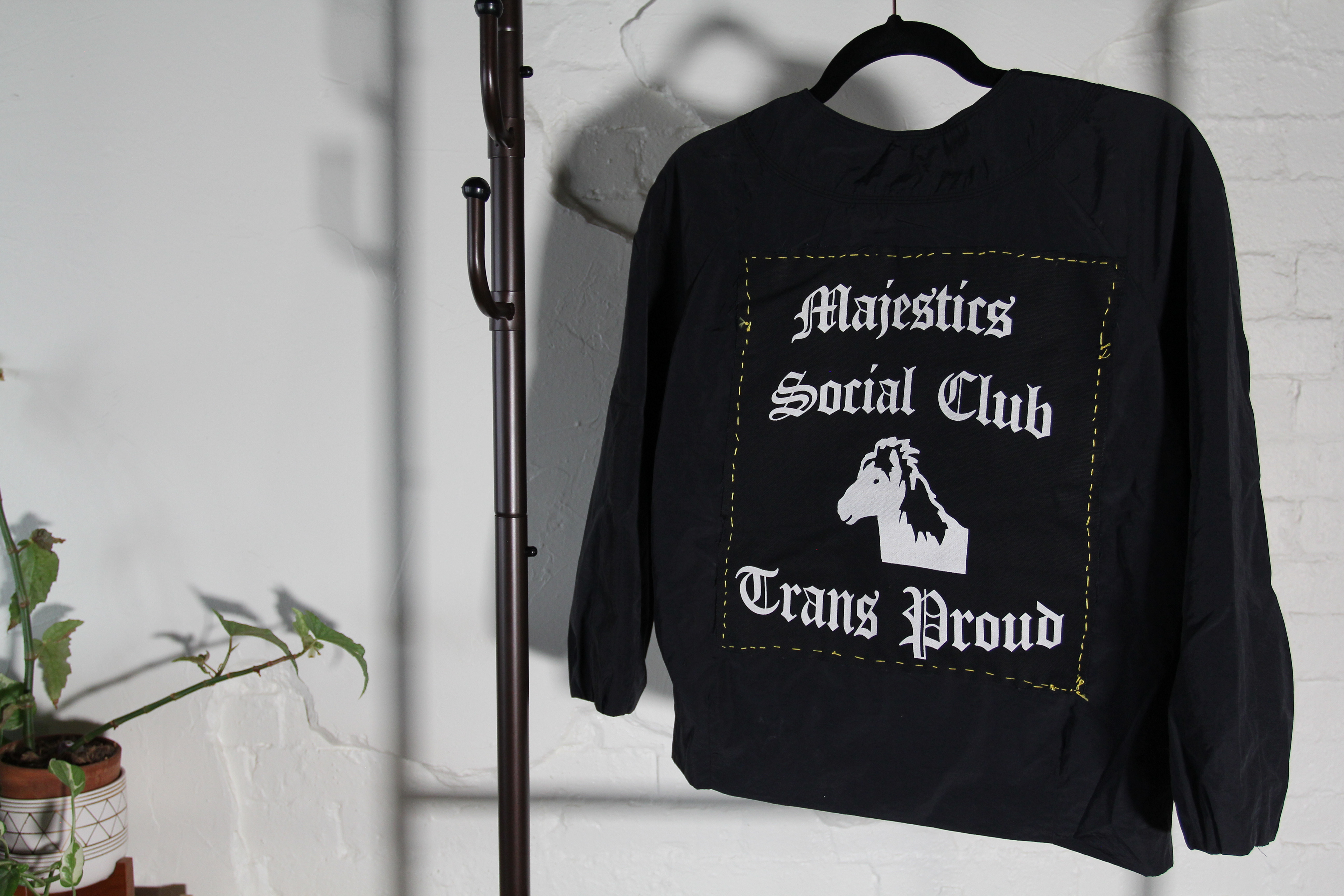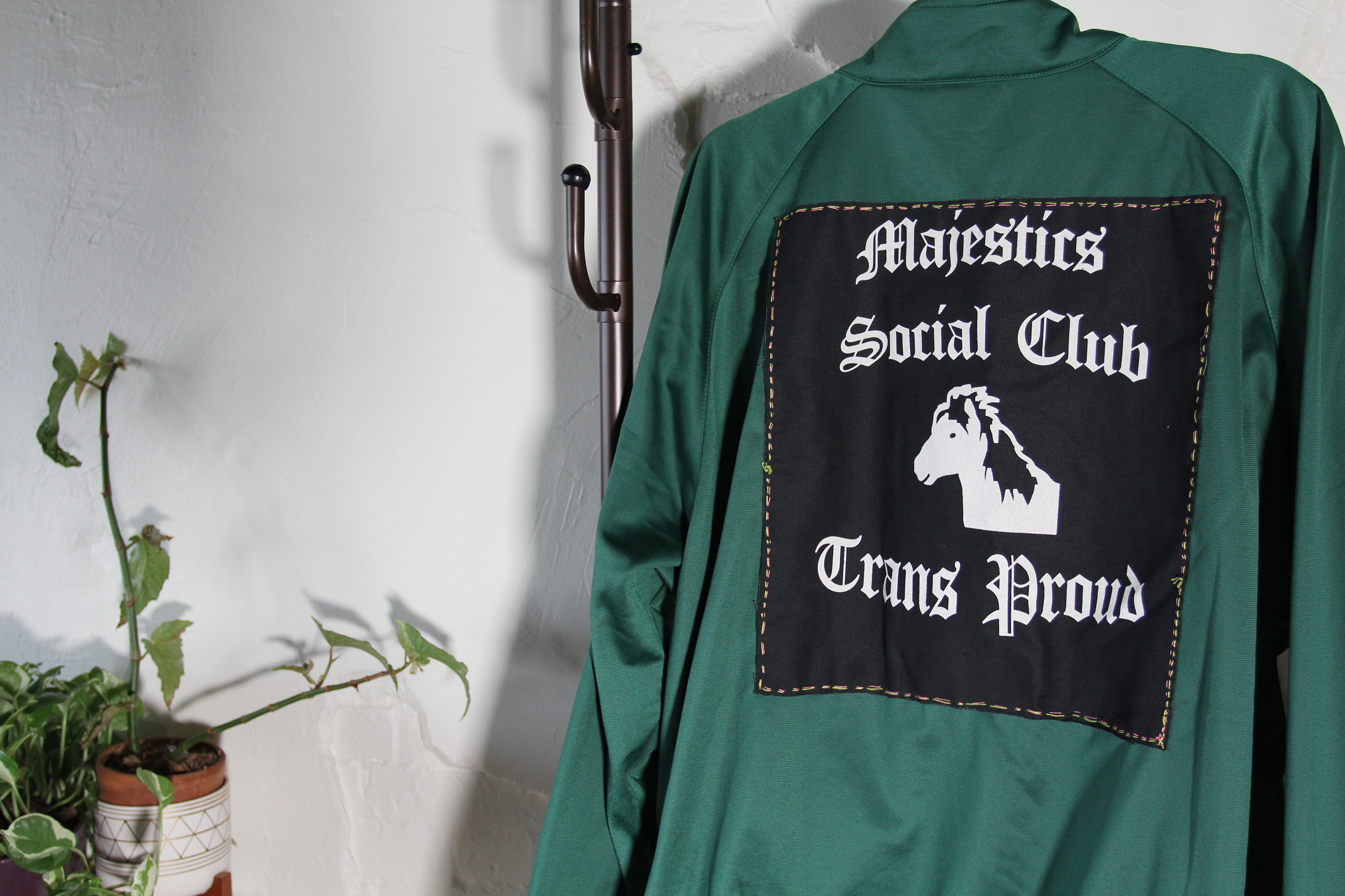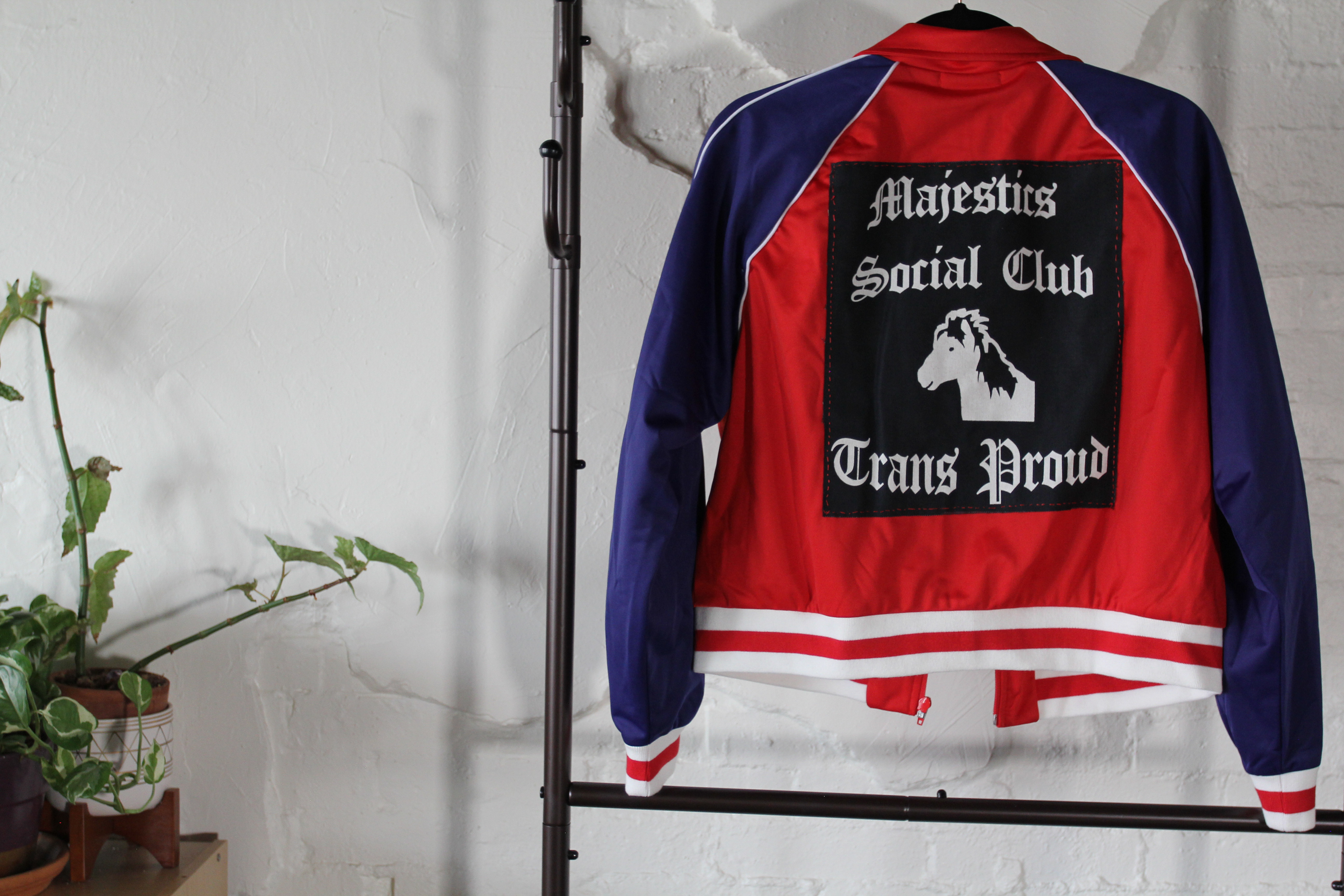 So, I present to you this collection of Club Jackets. Mostly assembled during the pandemic shutdown times, they have kept me company. They are in the spirit of movie outlaws, chosen family, self-love, queer magic, thriftiness, and belonging. I have sewn each one with great love and solidarity for my trans siblings. We are so strong, so needed in the world.